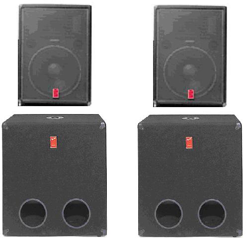Featuring B-52 SPF-18A Powered 1200-watt Subwoofers and B-52 ACT-1515(X) Powered 1000-watt , Dual 15" Two-Way Full Range Speakers